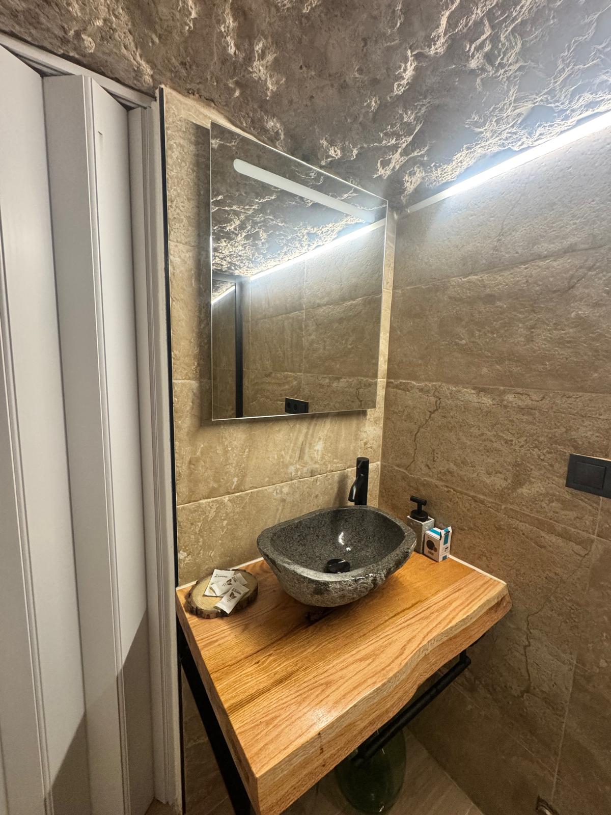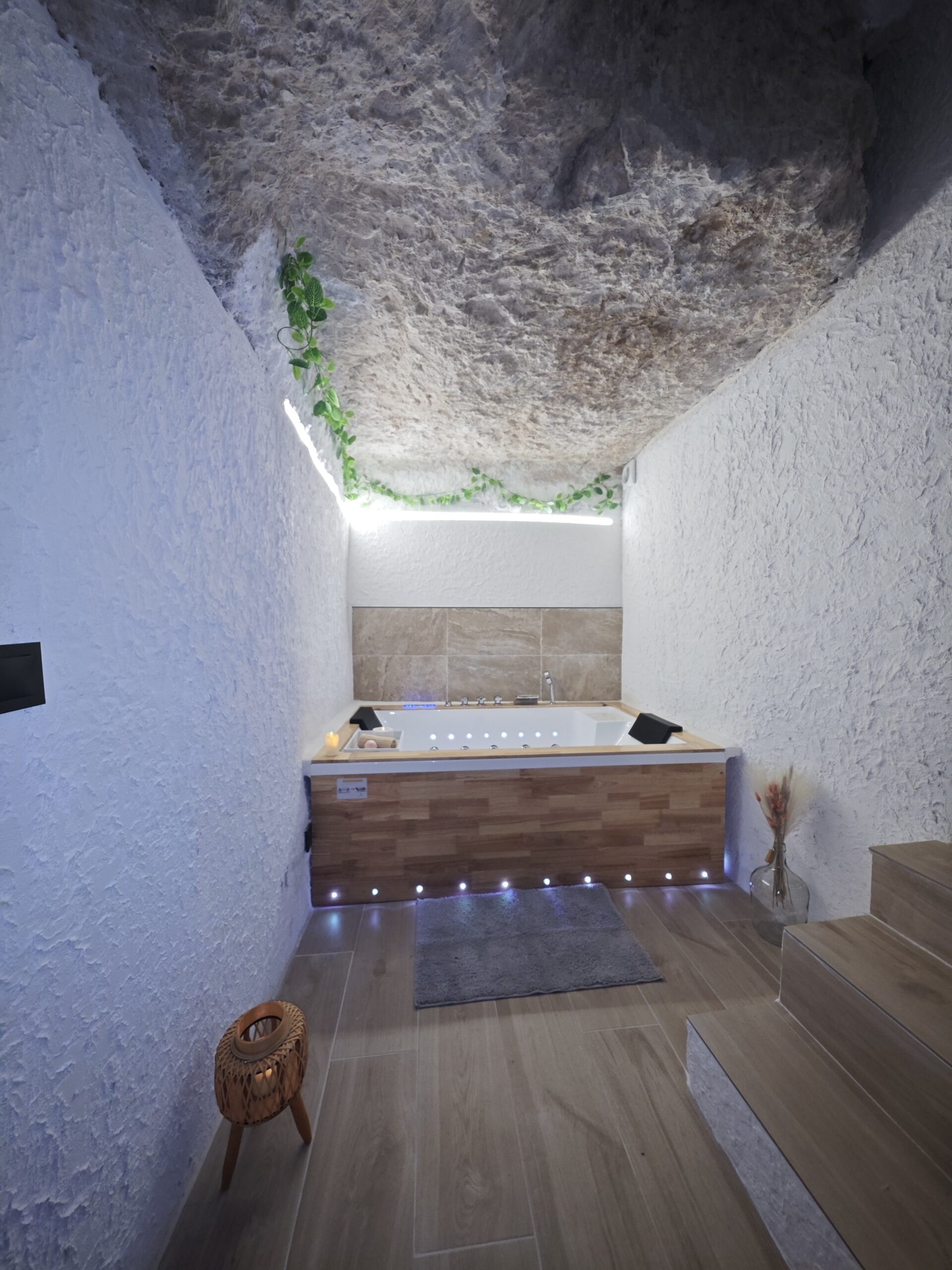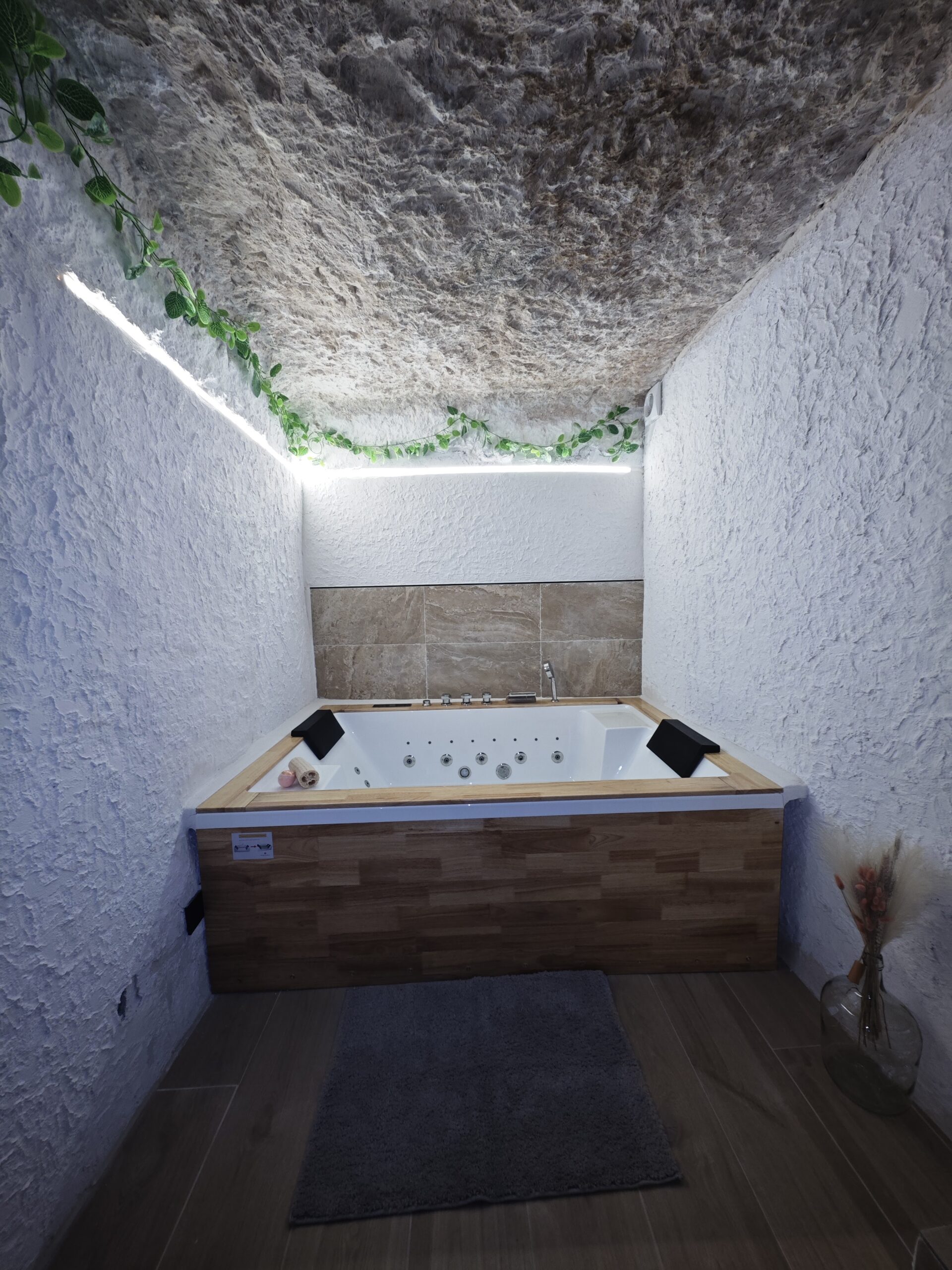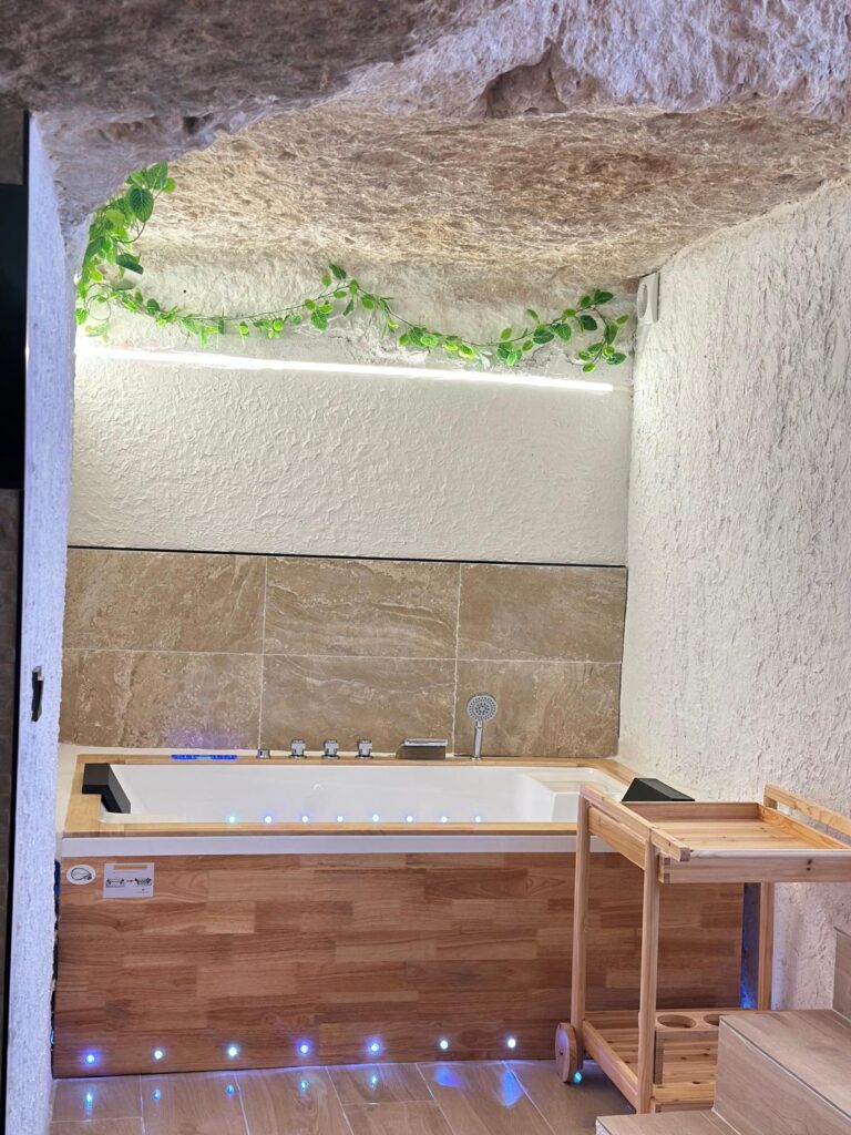 Alojate en esta maravillosa casa cueva en Alcalá del júcar. Vive una experiencia diferente y experimenta la sensación de paz de dormir bajo roca. Disfruta de nuestro hidromasaje doble mientras observas un manto de amonites en los techo, que refleja el paso del tiempo.