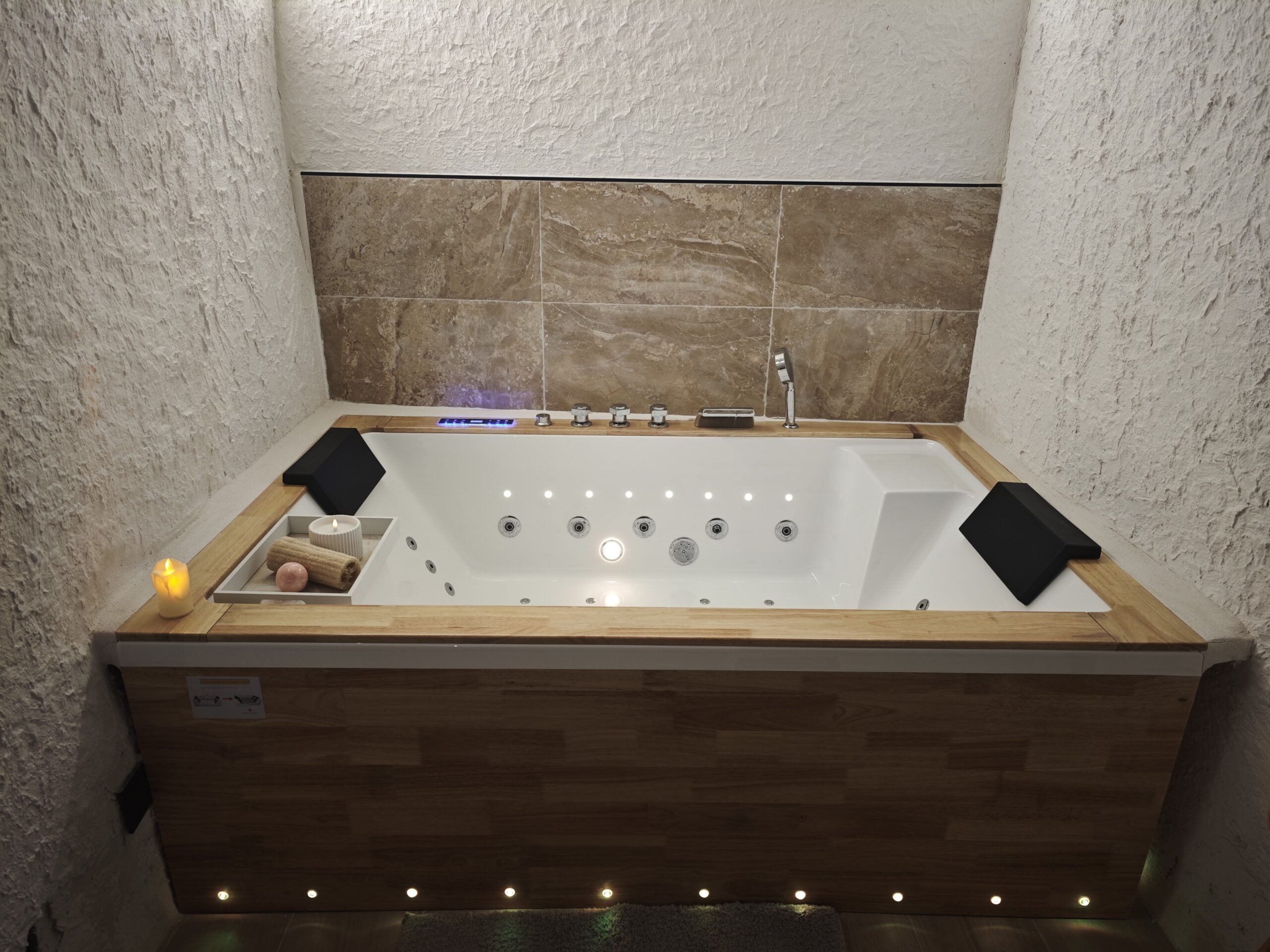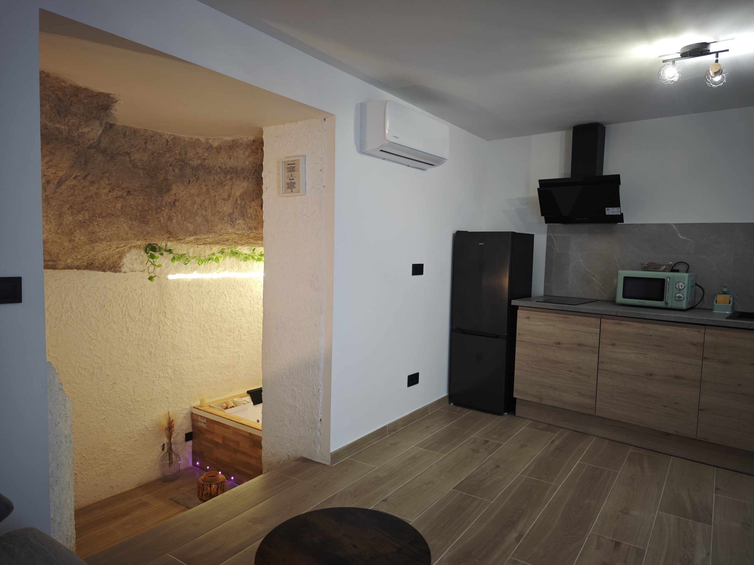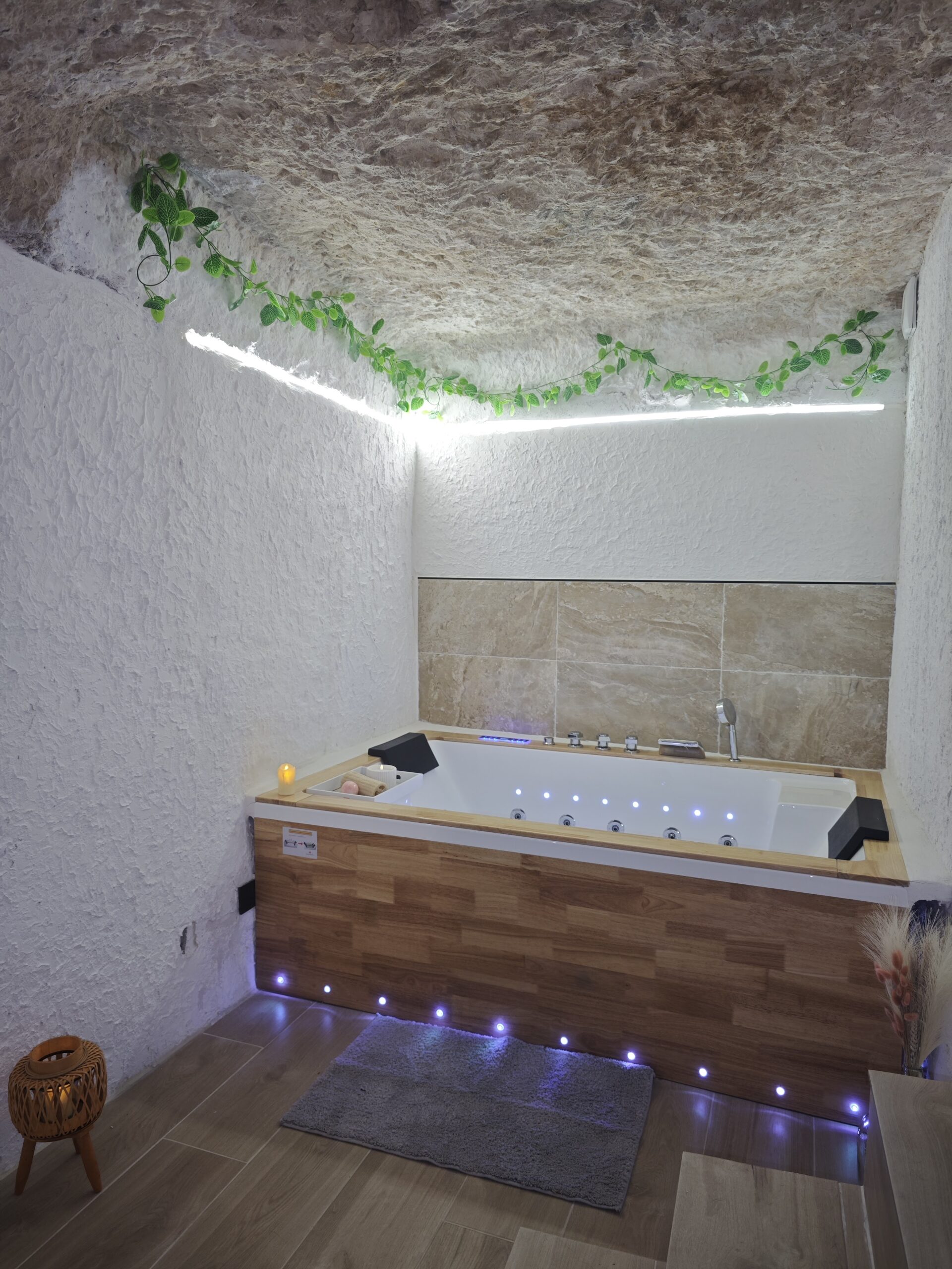 Alojate en esta maravillosa casa cueva en Alcalá del júcar. Vive una experiencia diferente y experimenta la sensación de paz de dormir bajo roca. Disfruta de nuestro hidromasaje doble mientras observas un manto de amonites en los techo, que refleja el paso del tiempo.