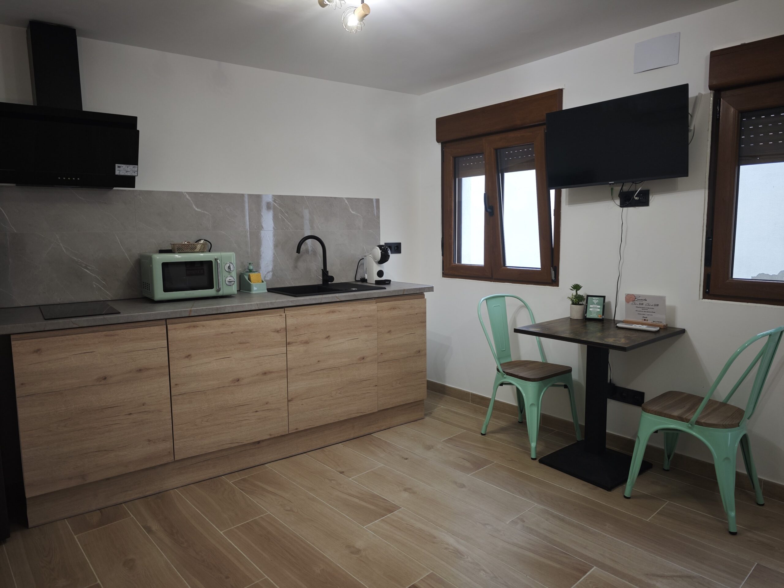 Equipada con cocina, cafetera, lavadora, aire acondicionado, tv en salón y dormitorio, hidromasaje doble, ducha bajo la piedra. Dispone de plancha para la ropa, secador de pelo.